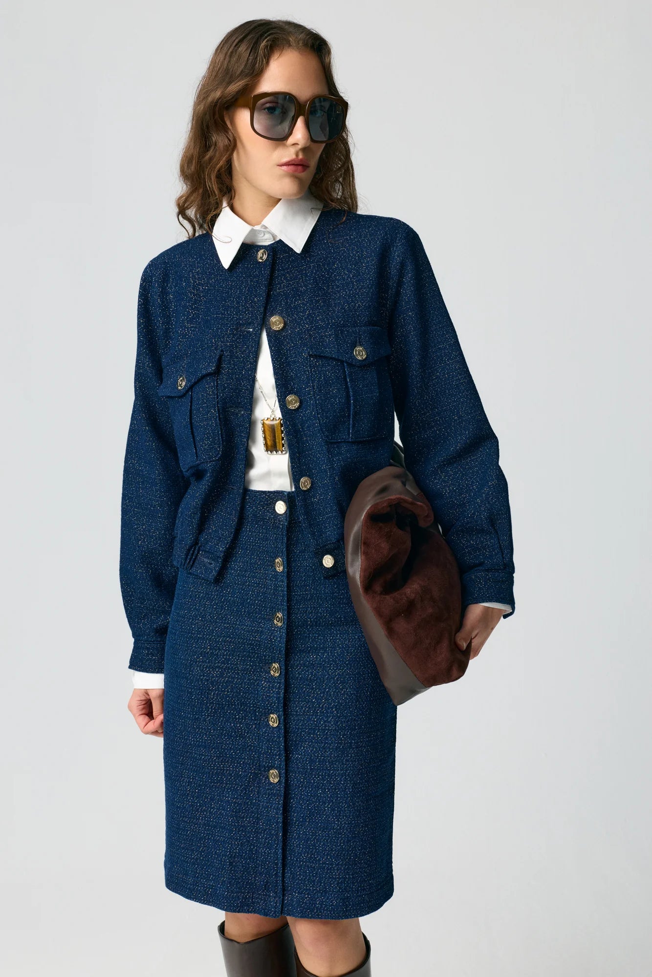 - Metal-button midi skirt